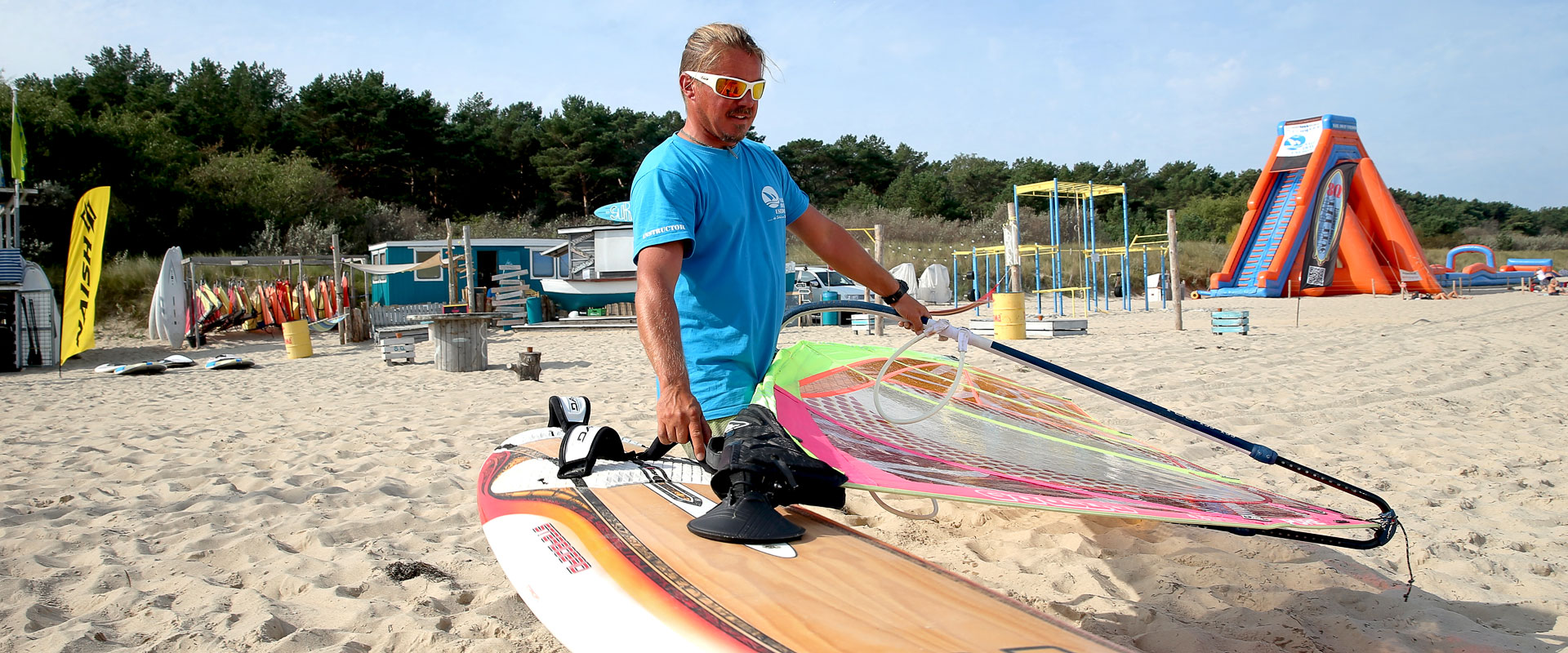 Falls ihr euch noch nicht sicher seid, ob ihr einen Surfkurs absolvieren wollt, entscheidet euch doch einfach für das zweistündige Schnuppersurfen. Das Schnuppersurfen findet in den ersten zwei Stunden des Grundkurses statt. Dabei erfolgt die Einführung in die richtige Handhabung von Surfbrett und Segel. Bei Spiel und Spaß am Strand mit "Trockenübungen" und ersten Einheiten auf dem Wasser bringen wir unseren Gästen den Wassersport „Windsurfen“ näher. |